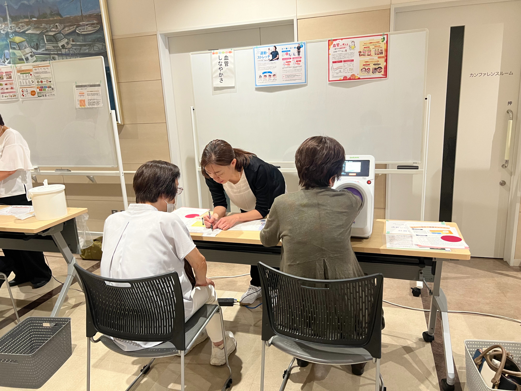 測定後に簡単なアドバイスを行っていただき、参加者の方々も楽しく、自分の「血管のしなやかさ」を知っていただきました。今回ブースによって頂いた皆様有難うございました。