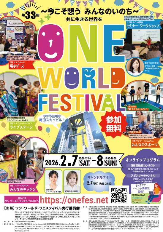 2026年2月7日、8日 に開催されます「第33回 ワンワールドフェスティバル」で"脈波測定装置ViewWave"を展示いたします。